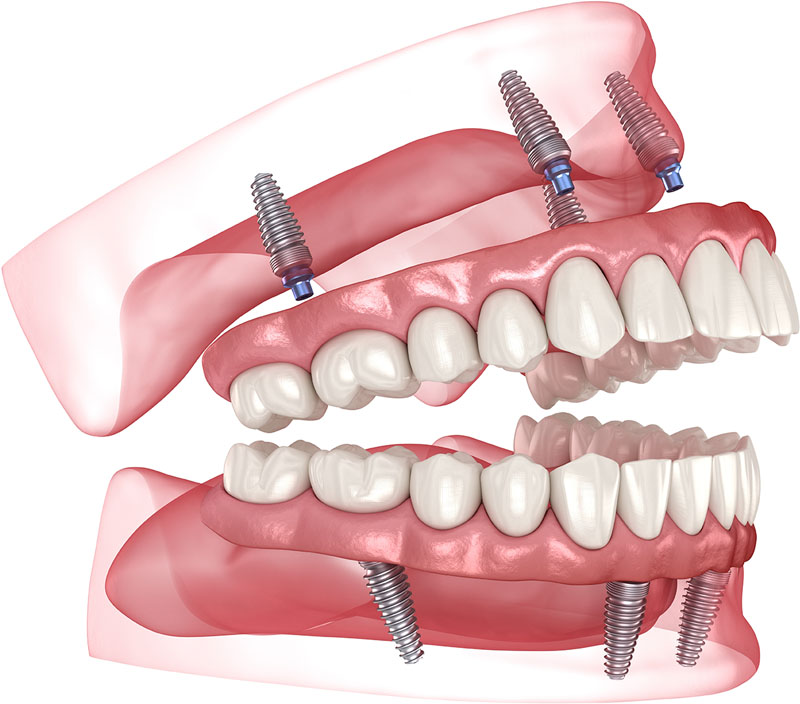 • 8 Dental Implants (4 on upper and 4 on Lower)